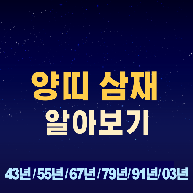 이번 포스팅에서는 양띠에 해당하는 43년생, 55년생, 67년생, 79년생, 91년생, 03년생의