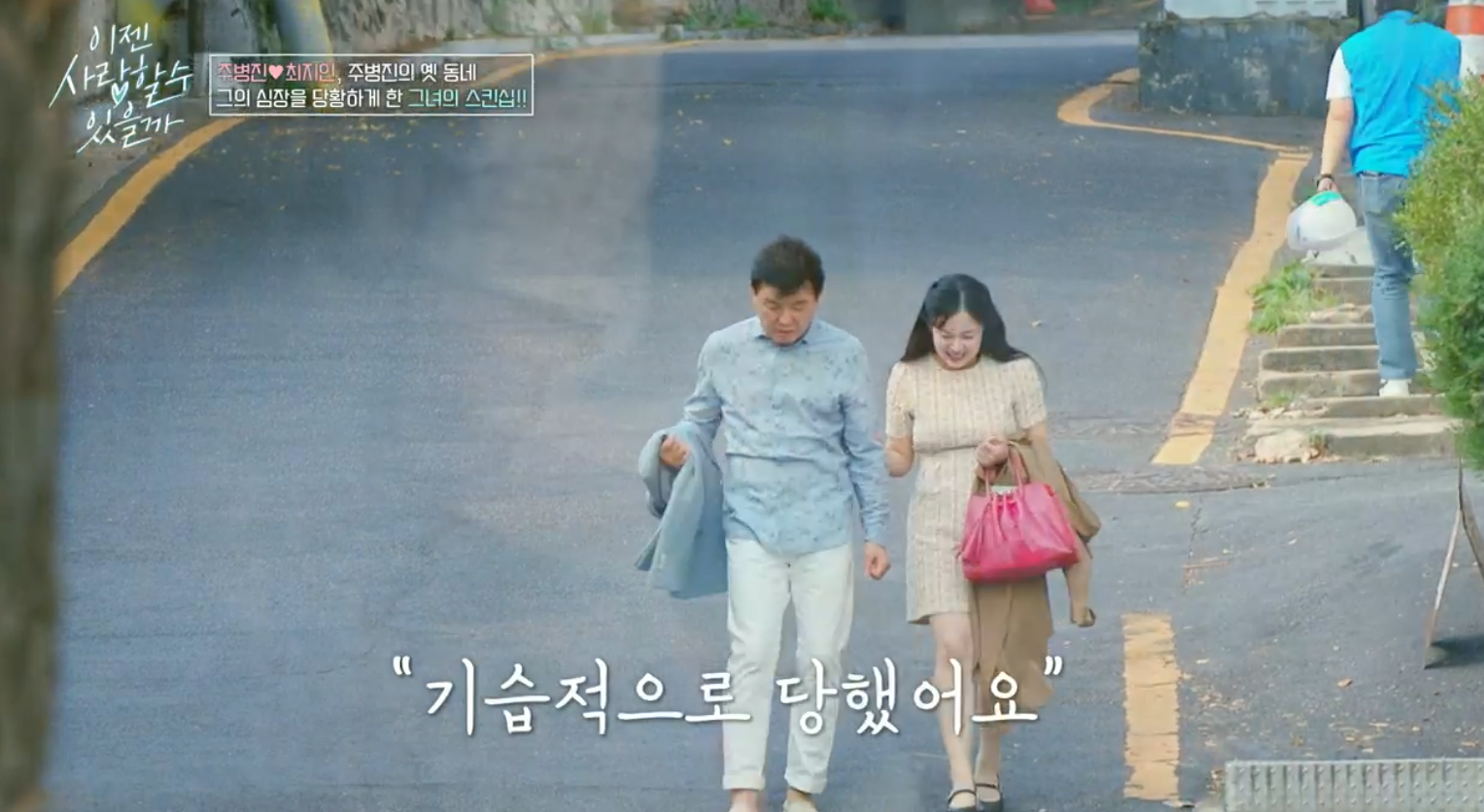 산책 중 최지인 씨가 주병진의 팔을 자연스럽게 잡았고, 이에 주병진은 "기습적으로 당했다.