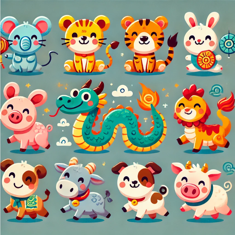 12간지는 동양의 전통적인 시간 개념과 문화의 일부로,12가지 동물들이 순서대로 배정되어 사람들의 태어난 해를 상징합니다. 이 간지 체계는 사람의 성격, 운명, 궁합 등을 파악하는 데 자주 활