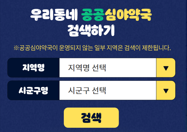 💡 TIP: 공공심야약국은 의료기관이 문을 닫는 시간대에 의약품을 필요로 하는